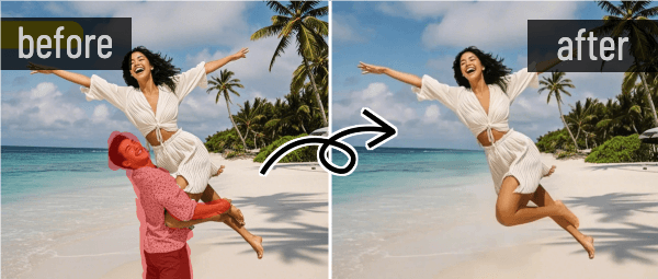 通过涂抹消除图片上的指定部分,在路人消除、杂物消除、水印消除等任务表现较好。